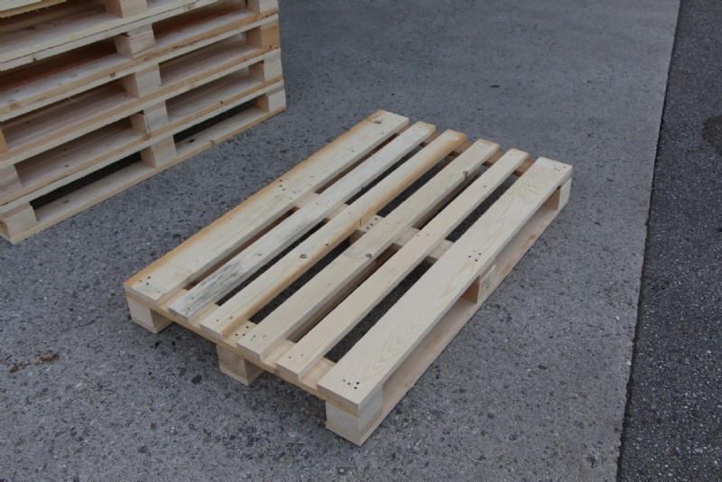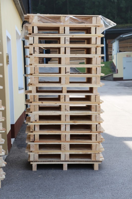 Eine weitere Produktschiene sind die Einwegpaletten, die wir in den von Ihnen gewünschten Sondermaßen produzieren. Dabei werden je nach benötigter Belastbarkeit der Palette 18- oder 23-mm-Bretter verwendet. Auch Paletten, die dem IPPC-Standard entsprechen, haben wir in unserem Sortiment.
