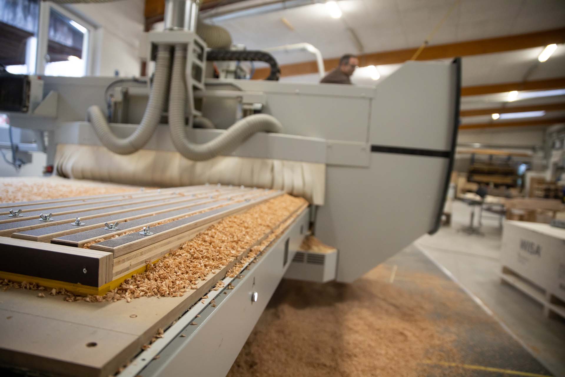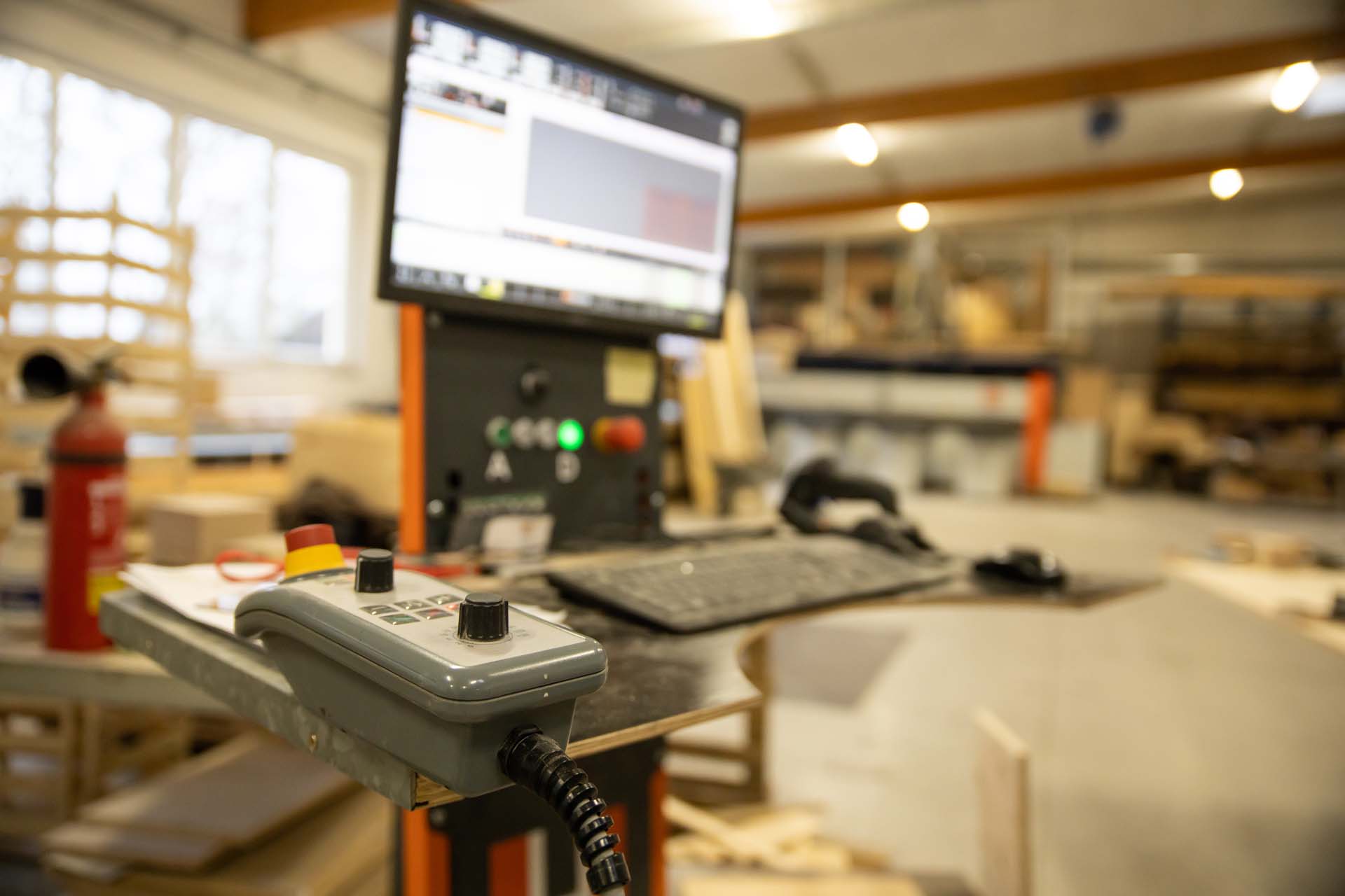 Seit 2018 haben wir eine 5-Achs CNC-Fräse (HOLZ-HER Dynestic 7535) in Verwendung, womit wir Plattenformate bis 6,25 x 2,20 m (Länge x Breite) verarbeiten können. Damit produzieren wir nicht nur Sonderkisten, sondern können auch diverse CNC-Zuschnitte anfertigen.